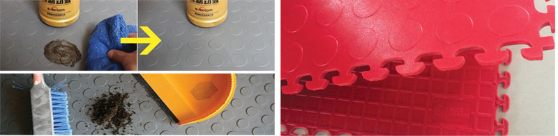Oil resistant, good cleaning: pvc floor mat material has a very dense structure, the oil can not penetrate, as long as the oil dripping is removed in time, we can keep the floor clean. Local oil can be directly wiped with a rag, a large area of stains can be cleaned by vacuum cleaner, mop or broom.