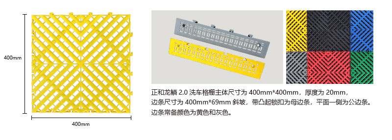 1.龍鱗紋設(shè)計(jì),防滑,美觀,寓意好 2.選用高級(jí)原料,加入其他輔料,顏色亮麗,無(wú)異味,無(wú)污染 3.顏色為紅黃藍(lán)綠黑灰六色,滿足客戶用色需求,搭配屬于自己的風(fēng)格 4.通扣鎖扣設(shè)計(jì),容易鋪設(shè)且容易拆卸打理 5.加強(qiáng)支撐,不容易出現(xiàn)壓壞壓斷現(xiàn)象,滿足大多數(shù)車輛施工的要求 6.使用年限長(zhǎng),3年超長(zhǎng)質(zhì)保,使用無(wú)后顧之憂 7.不同厚度,采用不同支撐,保證承載最大化的同時(shí),且易排泥排水